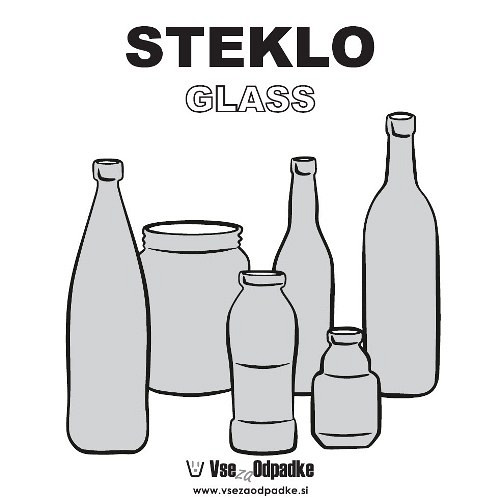 Samolepilno nalepko z napisom steklo lahko prilepimo na vse zabojnike in koše. Je obstojna in nam omogoča enostavno označevanje zabojnikov, kam sodi kakšen odpadek. Ozadje nalepke je prozorno. Za nakup večjih količin nas kontaktirajte.